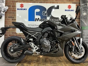 • Model year: 2025 • Engine: 776cc liquid-cooled parallel-twin DOHC with 270° crankshaft for strong low- to mid-range torque • Transmission: 6-speed constant mesh with Bi-directional Quick Shift system • Clutch: Suzuki Clutch Assist System (SCAS) for lighter lever action and smoother downshifts • Chassis: Full fairing design for aerodynamic performance and sporty ergonomics • Suspension: SHOWA SFF-BP (Separate Function Fork – Big Piston) inverted front forks and rear mono-shock • Brakes: Dual 310mm front discs with radial-mount 4-piston calipers, single rear disc; ABS-equipped • Tyres: 120/70ZR17 front and 180/55ZR17 rear • Electronics: